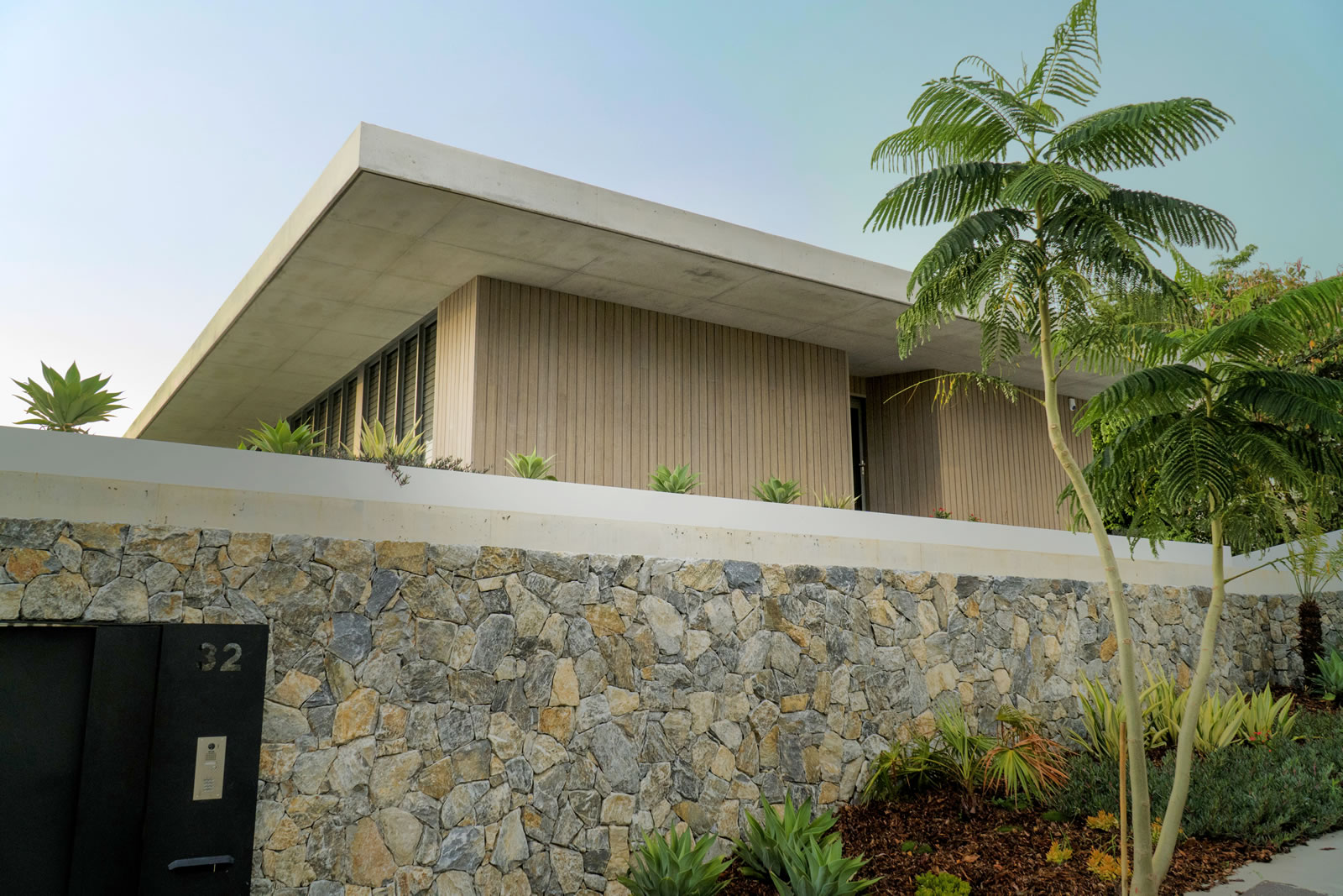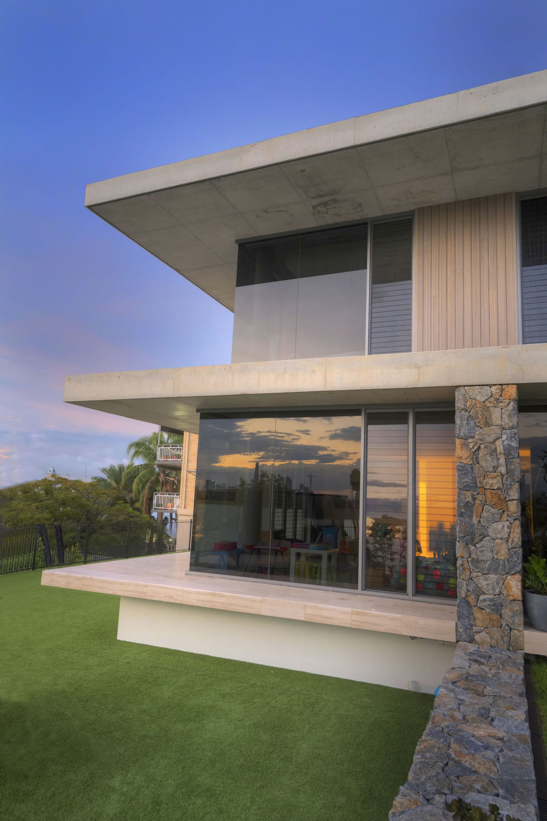 这是一位昆士兰商人在布里斯班郊区汉密尔顿的豪宅里所做的事情元素Vulcan + Hectar包层在恶劣的海岸环境中证明了自己