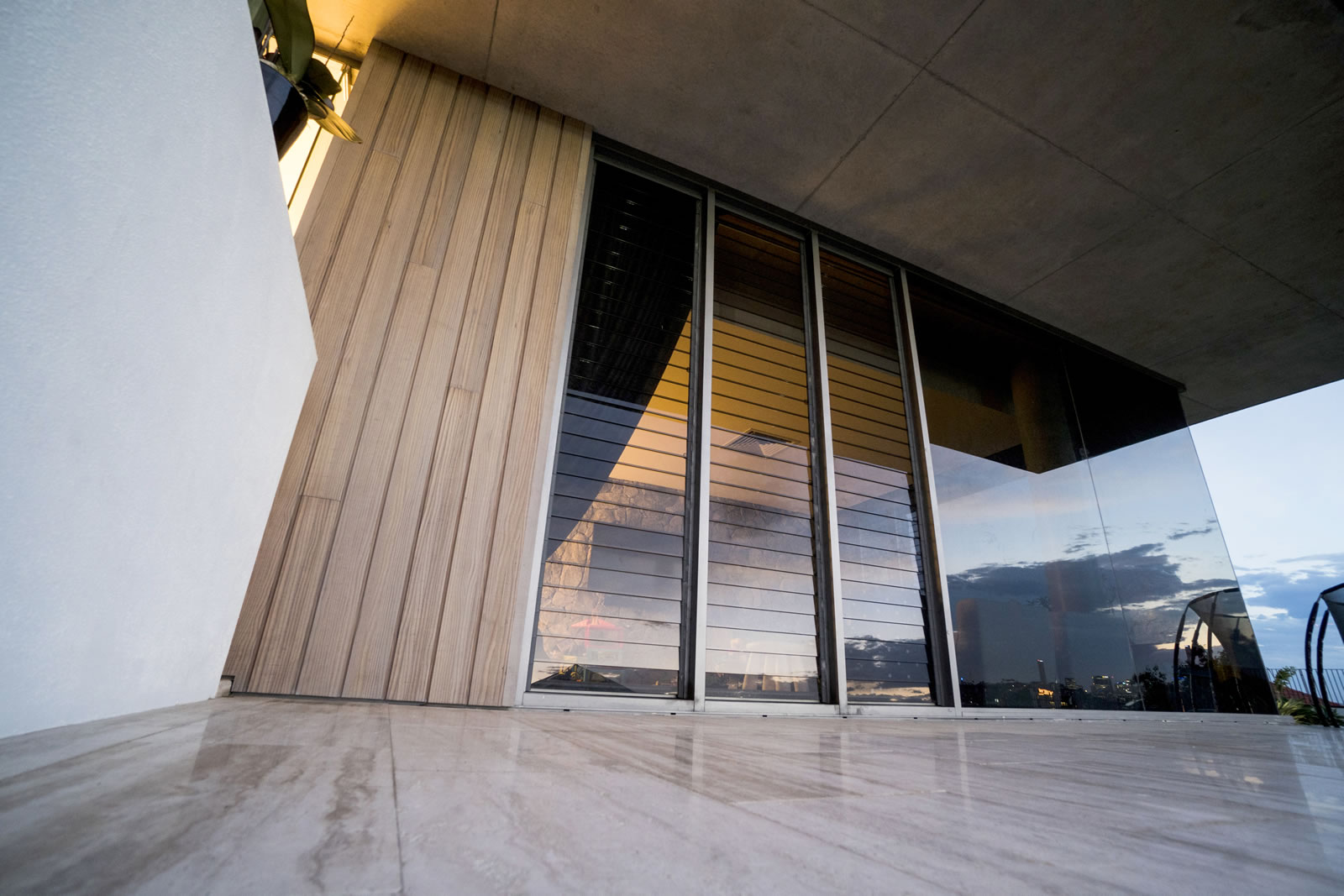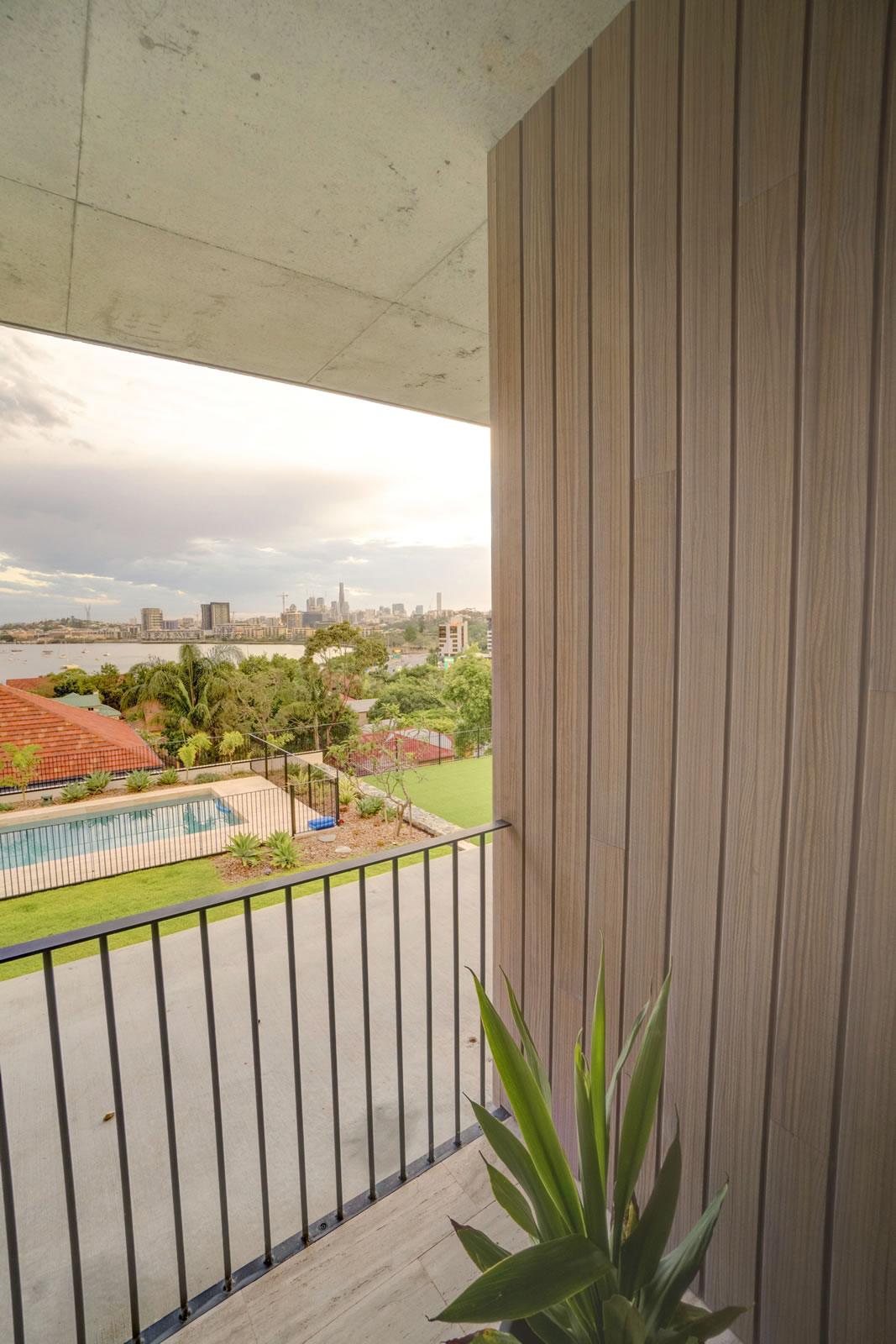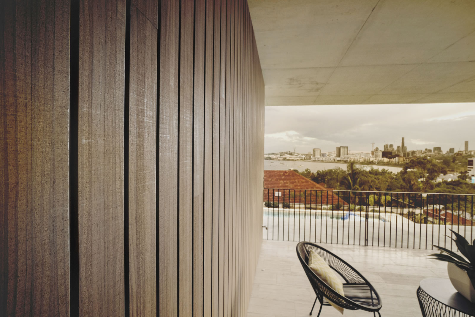 酒店和业主不仅喜欢时尚的外观,而且低维护的热改性木材。知道它是稳定和耐用的,它的银灰色颜色也使它是理想的选择。外部特色墙的饰面补充了住宅主要由混凝土和玻璃外墙组成的调色板