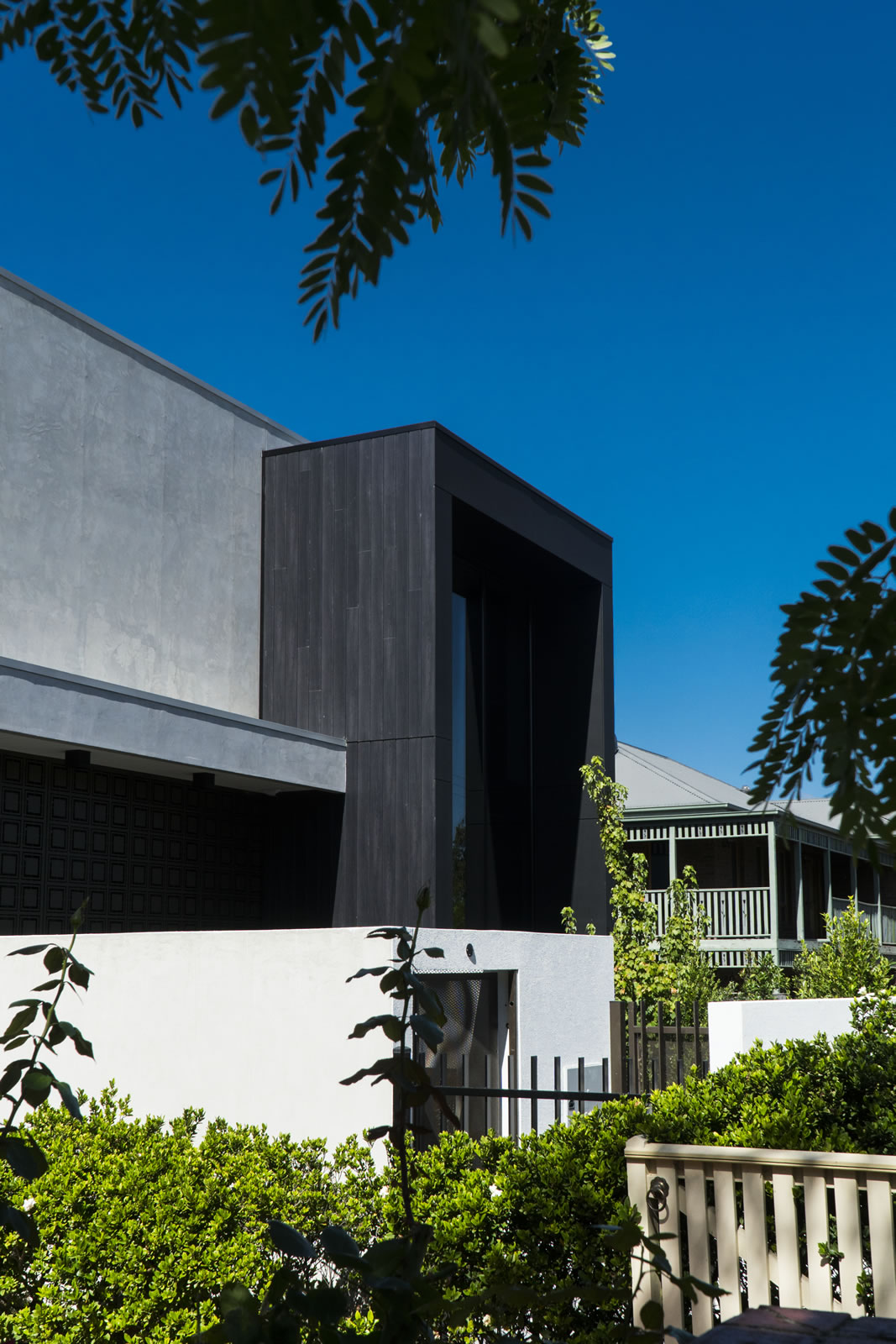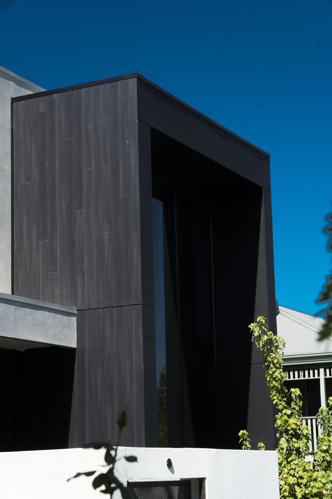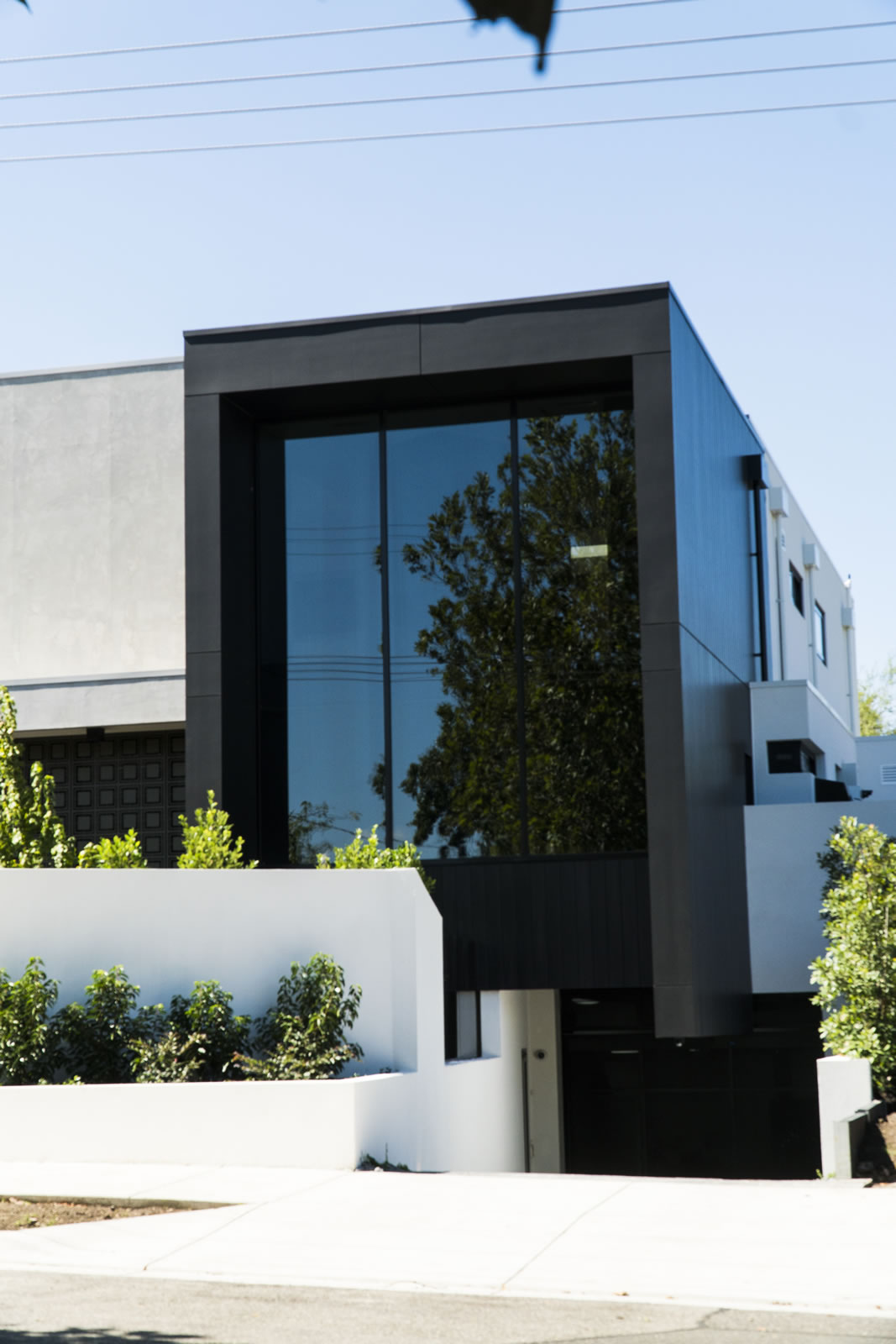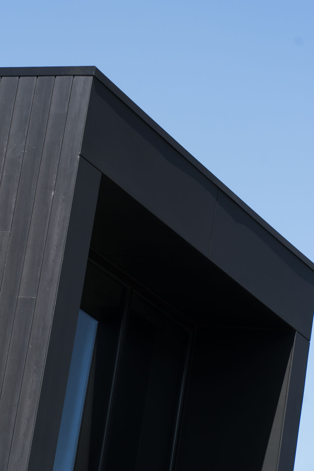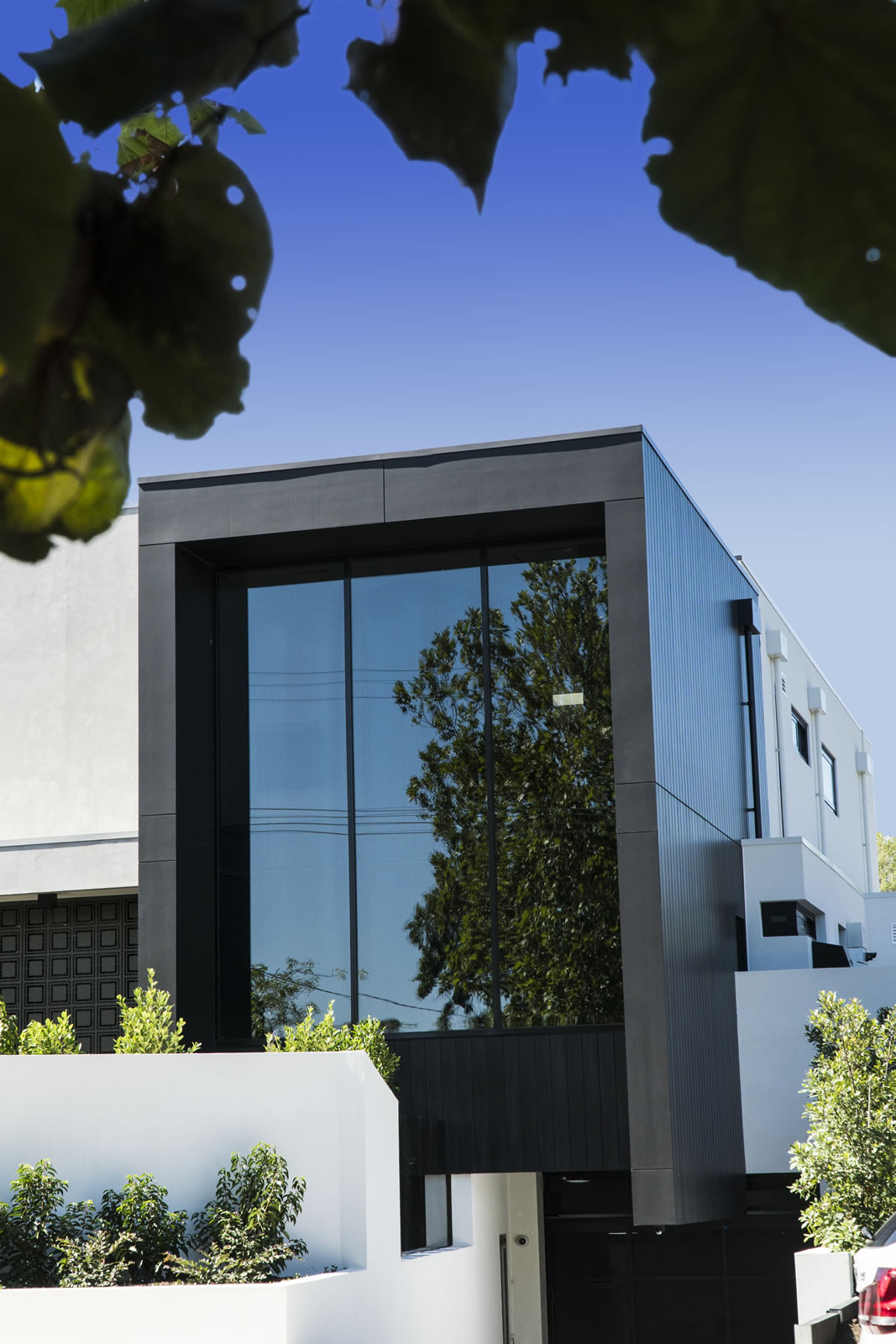 语句功能是前面的巨大黑色框架,使用欧洲塞莱克塔在非洲乌木。靠苍白水泥薄片,它展示了巨大的镜面窗,反映附近的树木:聪明地致敬的绿色,家庭友好的邻居。